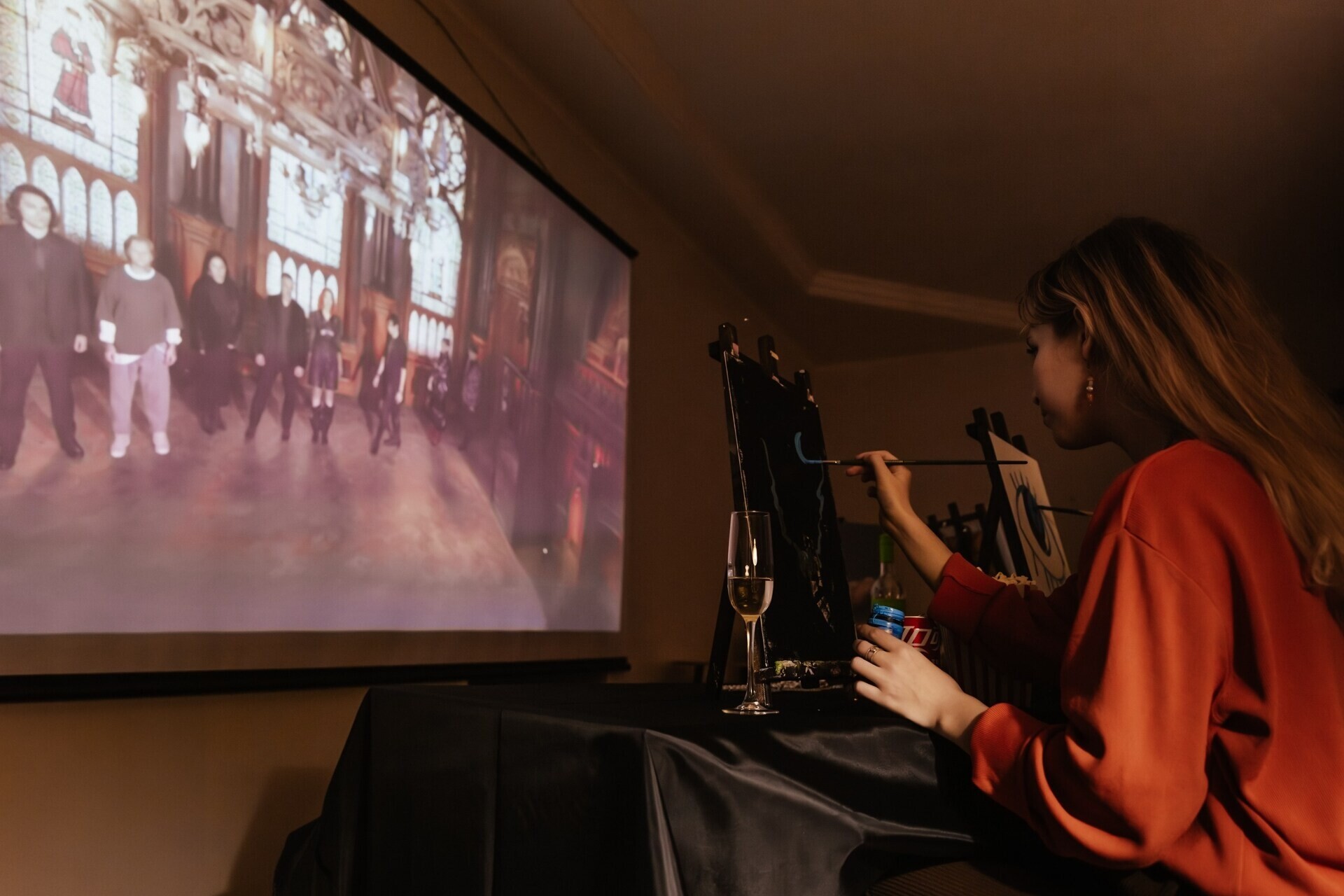 Абсолютная свобода: каждый из гостей рисует свой сюжет: пейзаж, портрет кота, абстракцию... — всё, что угодно, никаких ограничений.