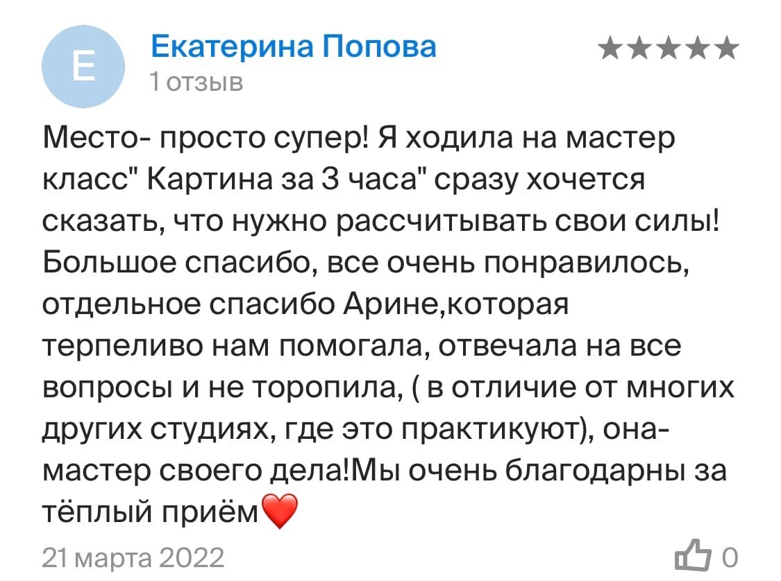Под руководством опытного художника на мастер-классе вы напишете готовую картину. Опыт и навыки рисования не требуются.
