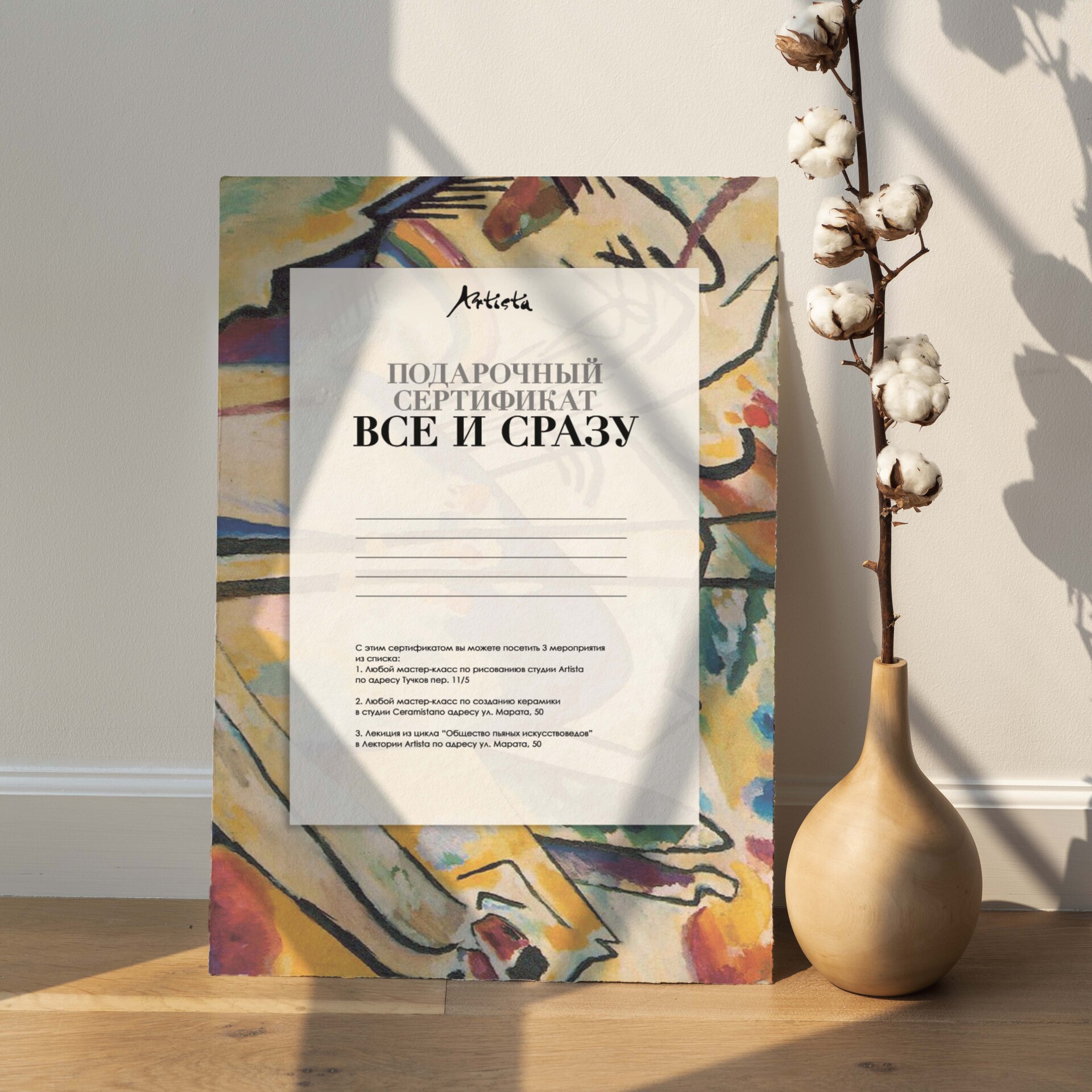 Обладатель сертификата может записаться на любой групповой мастер-класс в Художественной студии Artista.