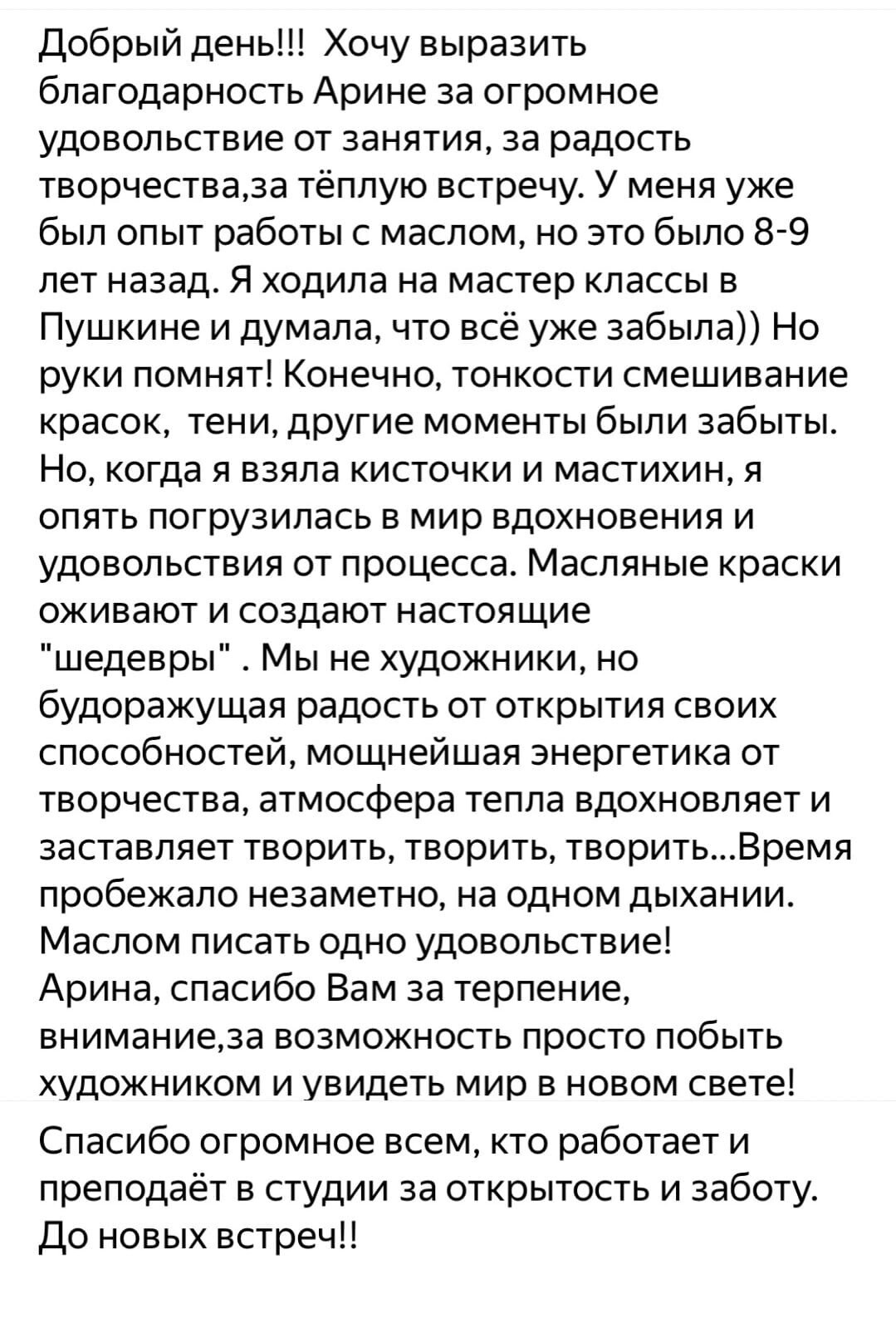 Вы мастер-классе вы изучите принципы работы масляными красками на холсте. Под руководством опытного художника на мастер-классе вы напишете готовую картину.