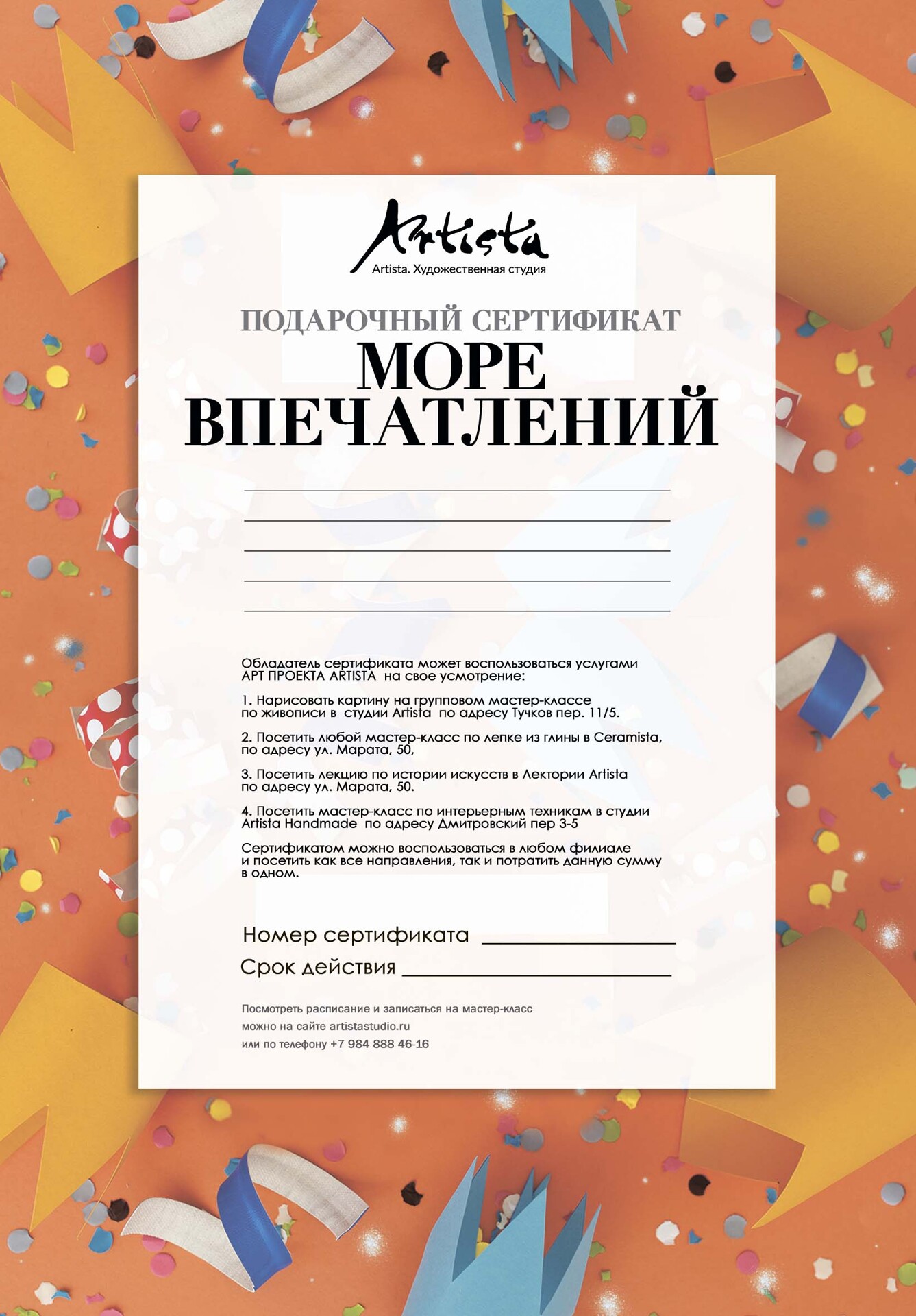 СЕРТИФИКАТ НА ЛЮБОЙ МК В ХУДОЖЕСТВЕННОЙ СТУДИИ