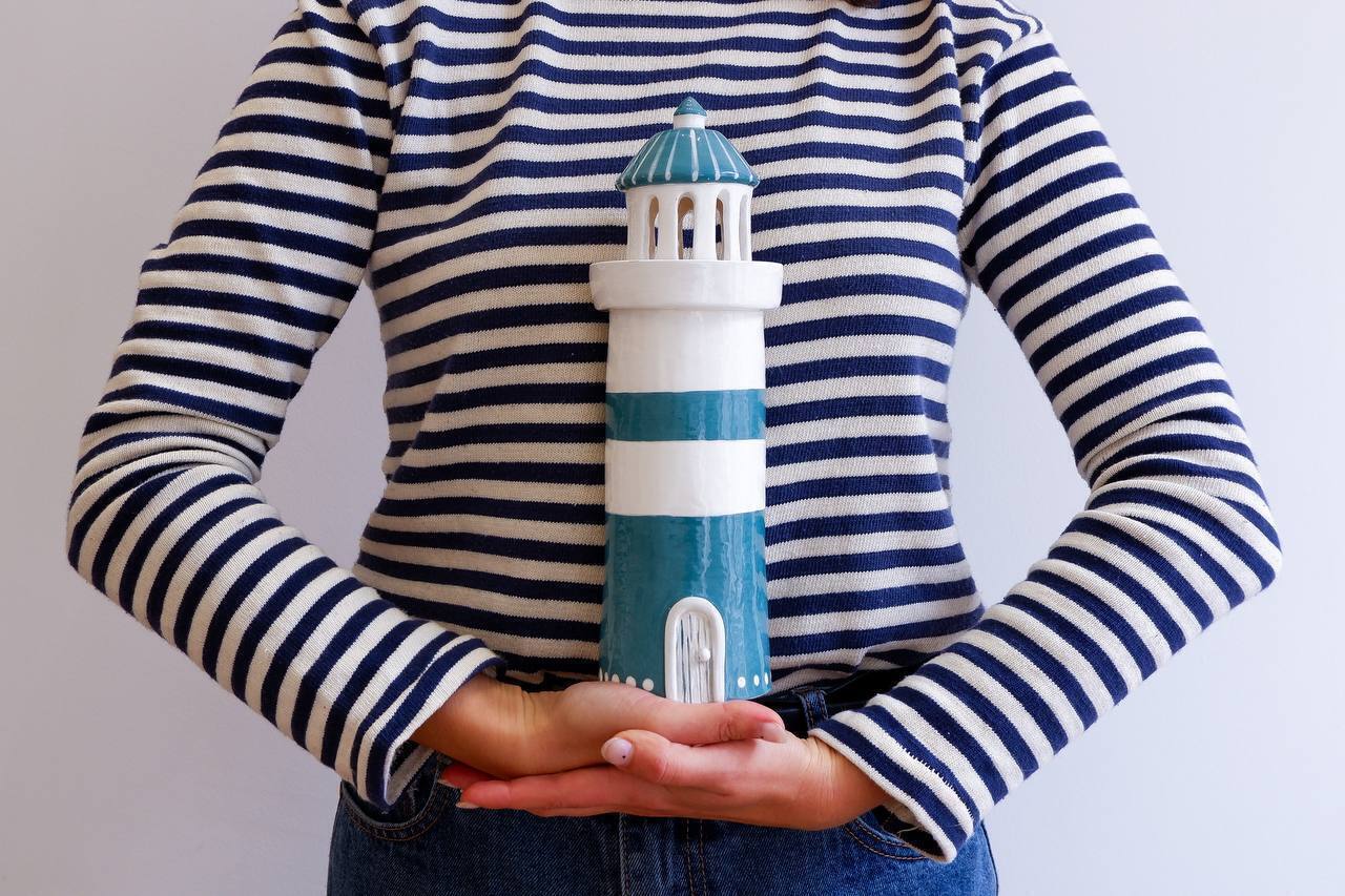 Создайте свой собственный маяк-аромолампу или подсвечник. Красный в белую полоску или белый в синюю. Выбирать только вам.