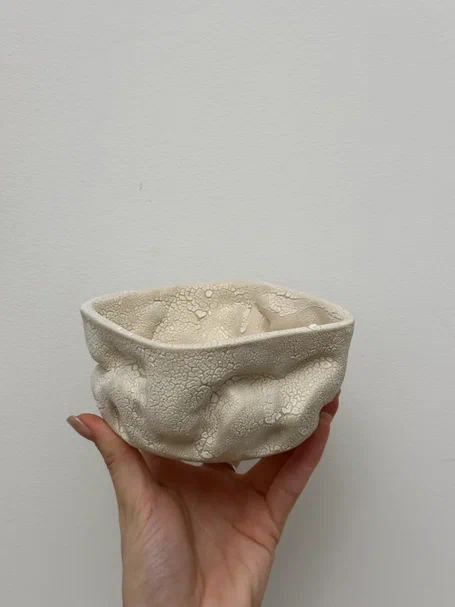 Вы создаете изделие из круглого комочка глины - вытягиваете стенки, расширяете форму исходя из своей задумки. Осталось только украсить!