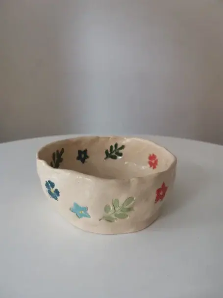 Техника заключается в раскатывании глины в пласт, из которого вырезается тарелочка! Вы придаете ей нужную форму, поднимаете стенки и декорируете по своему вкусу.