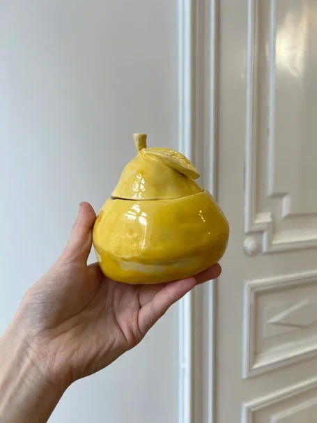 Слепите оригинальную баночку под что угодно, а может быть это будет просто интерьерная вещица или подсвечник форме любимого фрукта/овоща/грибочка и т.д.