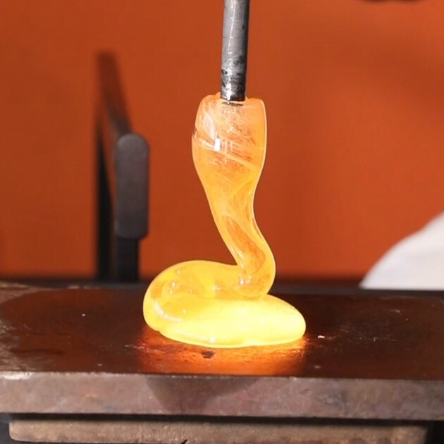 Один мастер рассказывает, второй создаёт шедевр на ваших глазах – стекло меняет форму и цвет, завораживая зрителей.