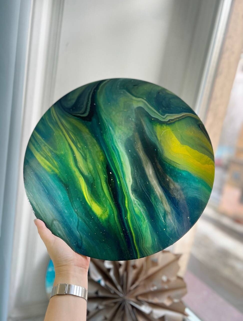 На мастер-классе вы научитесь работать в технике жидкого акрила (Fluid Art) и под руководством мастера создадите неповторимые изделия с абстрактным узором для вашего интерьера или в подарок