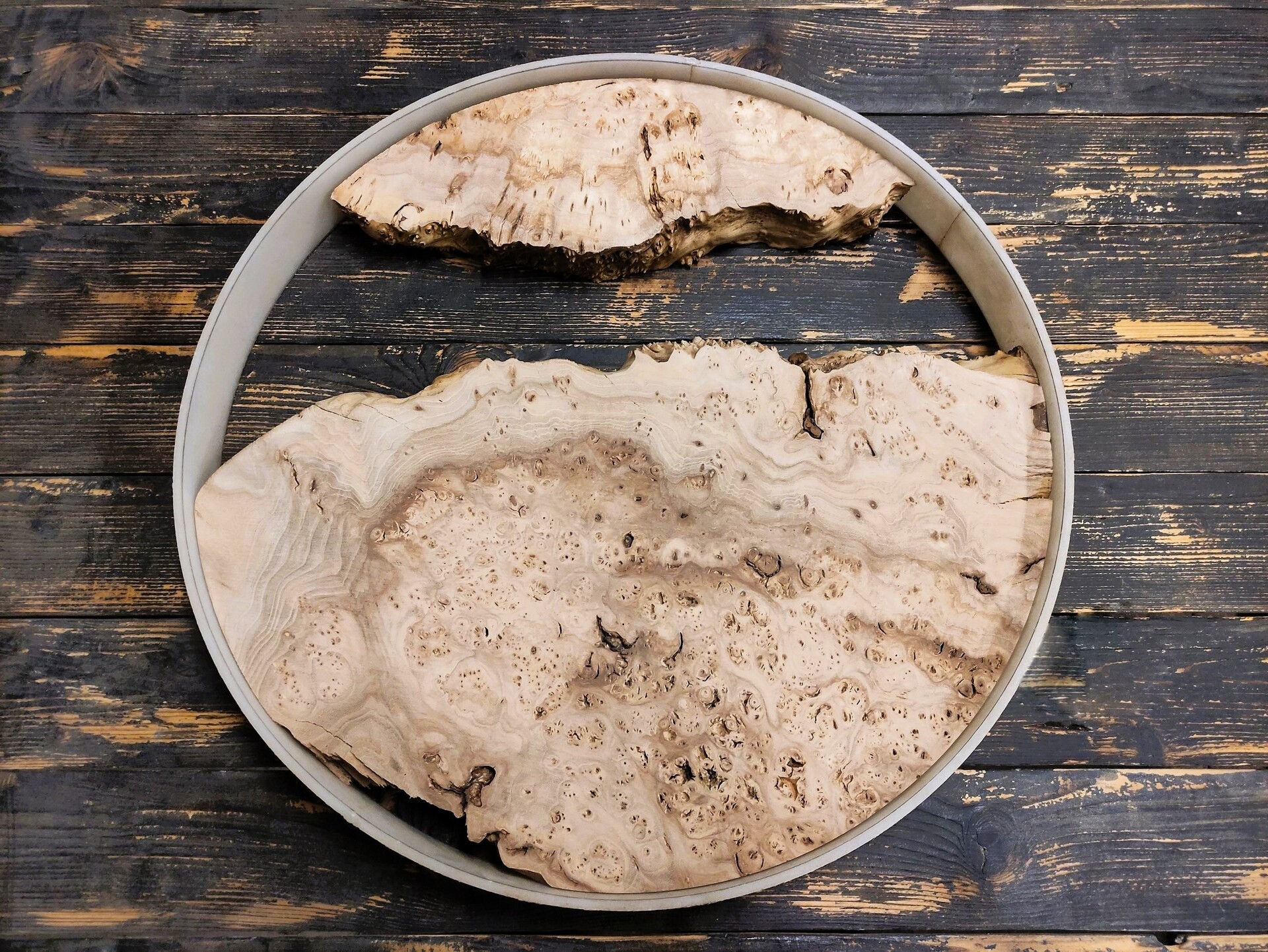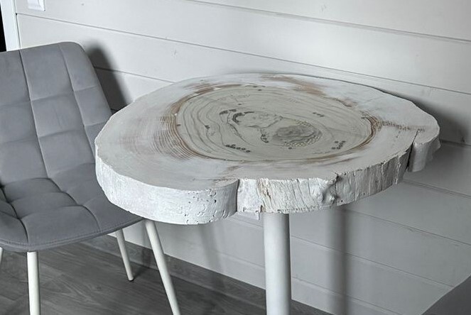 Второе занятие посвящено подготовке к работе со второй столешницей из деревянного слэба диаметром 50см.