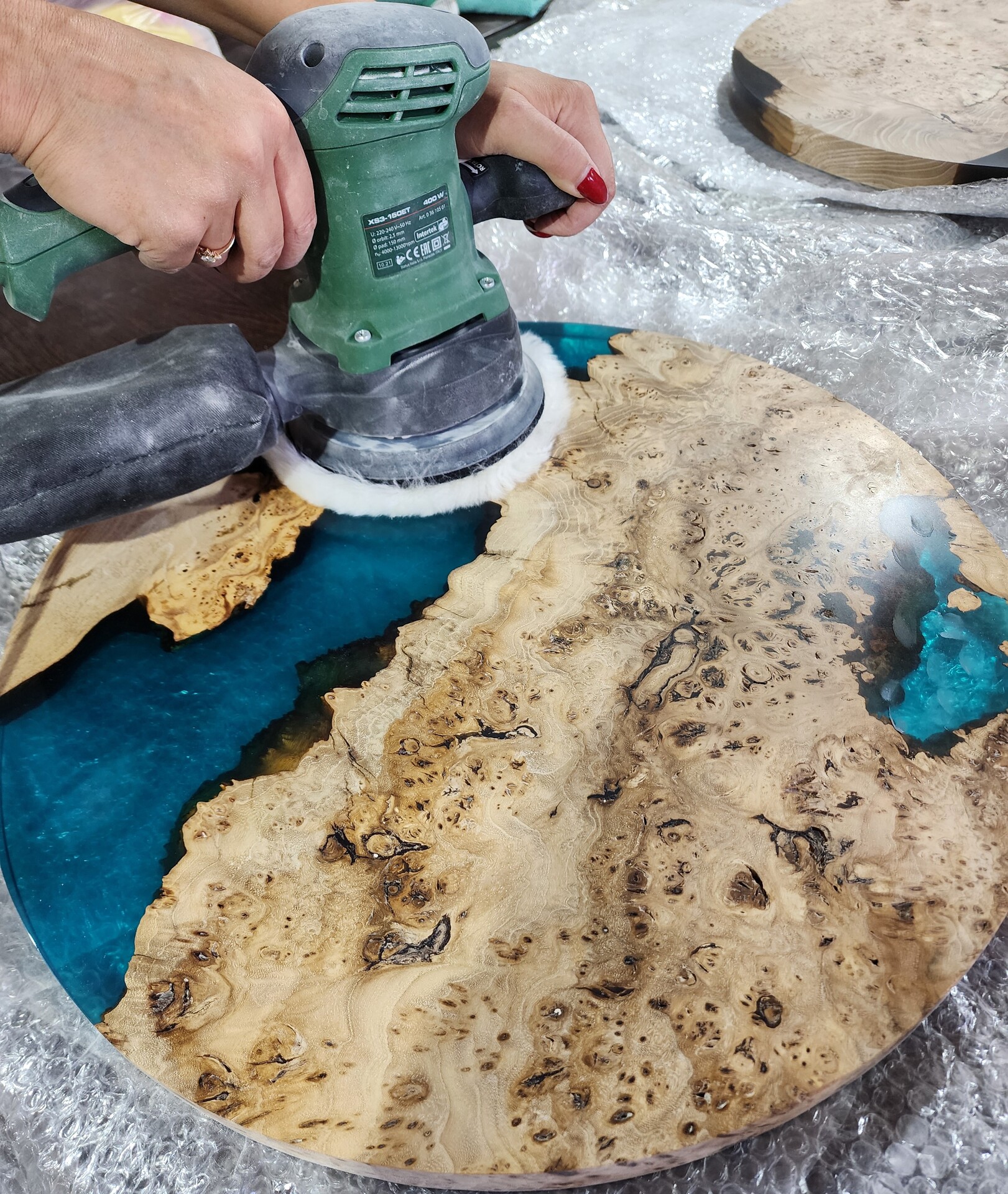 На заключительном занятии вы превратите свою столешницу в завершенный стильный предмет интерьера. Произведете заключительный этап шлифовки смолы и полировки её специальными пастами и маслами для дерева.
