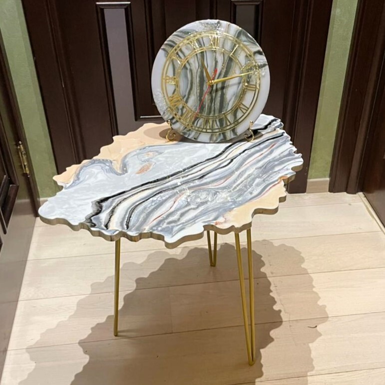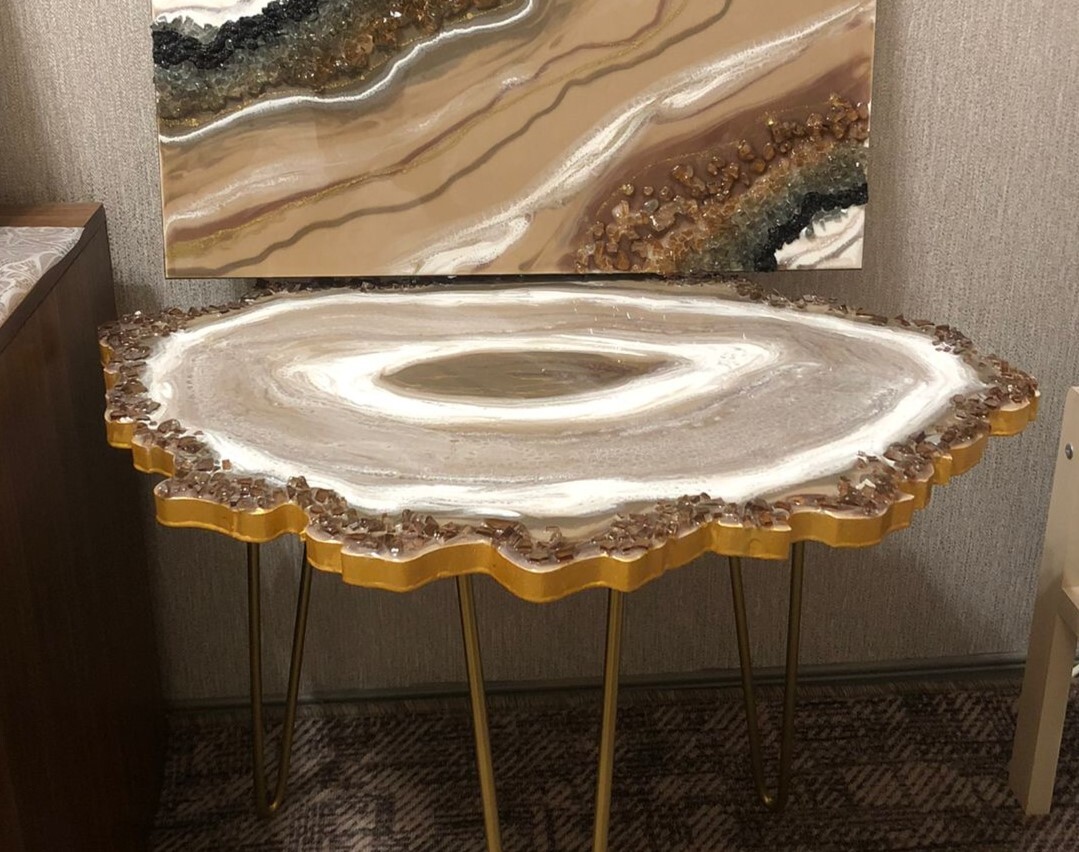 На первом занятии вы зальете столешницу из МДФ материала в форме, имитирующей срез минерала 50*70см.