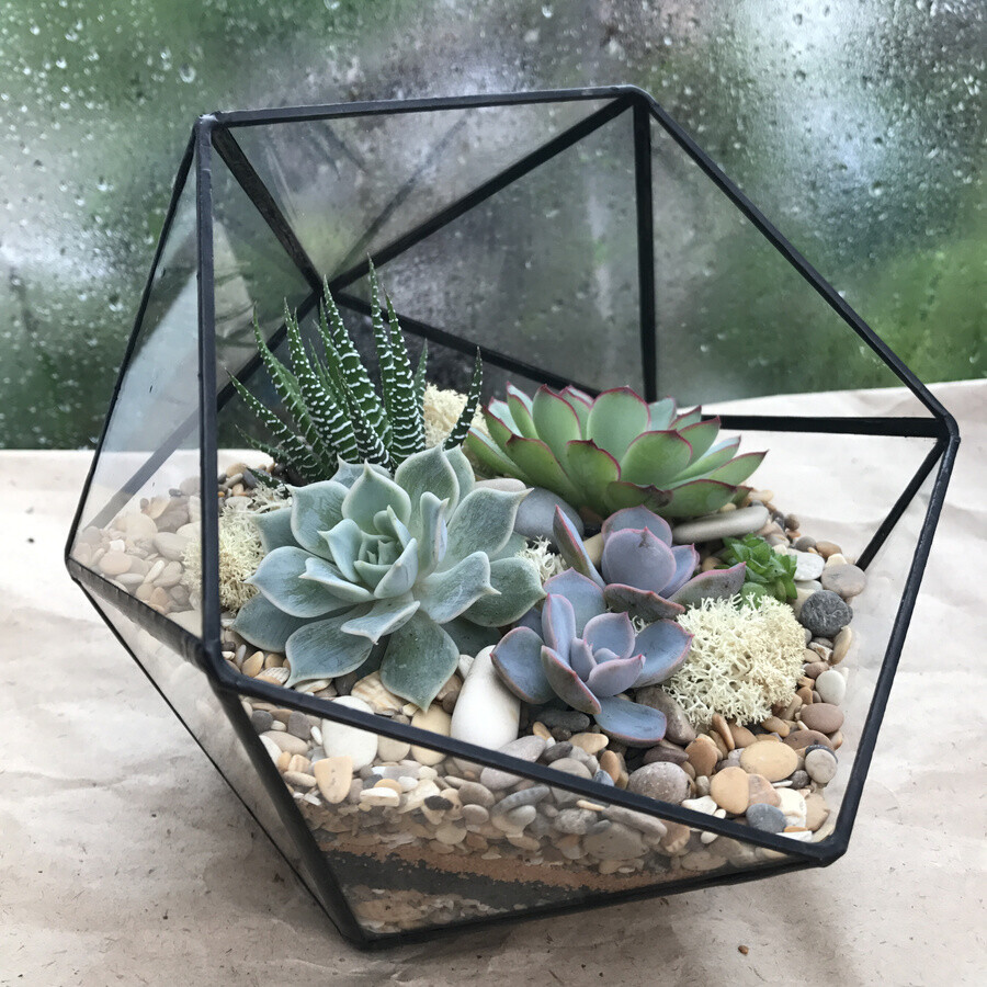 Не забудьте заранее выбрать форму для вашего флорариума. Можно выбрать каплю, икосаэдр или форму шар. Продумайте желаемый результат. Импровизация приветствуется. Мастер подскажет вам выгодное решение