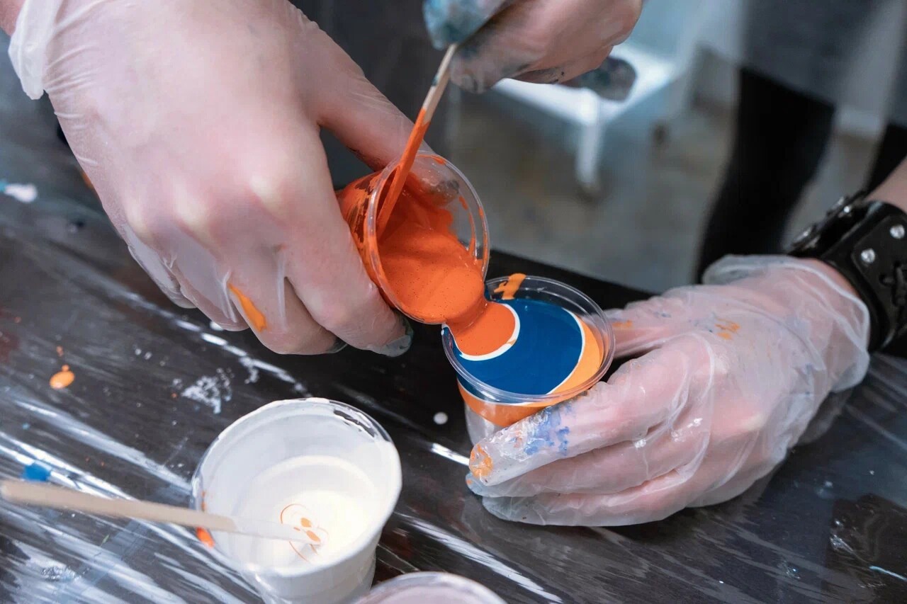 На мастер-класс по флюид арту можно записывать детей от 7 лет при сопровождении взрослого. Сопровождение взрослого не требуется от 12 лет.