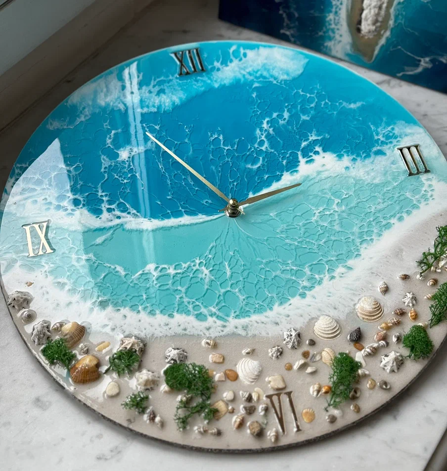 Подарите кусочек моря себе или своим близким. Создайте своими руками изделие из эпоксидной смолы с настоящими волнами, морской пеной и ракушкам