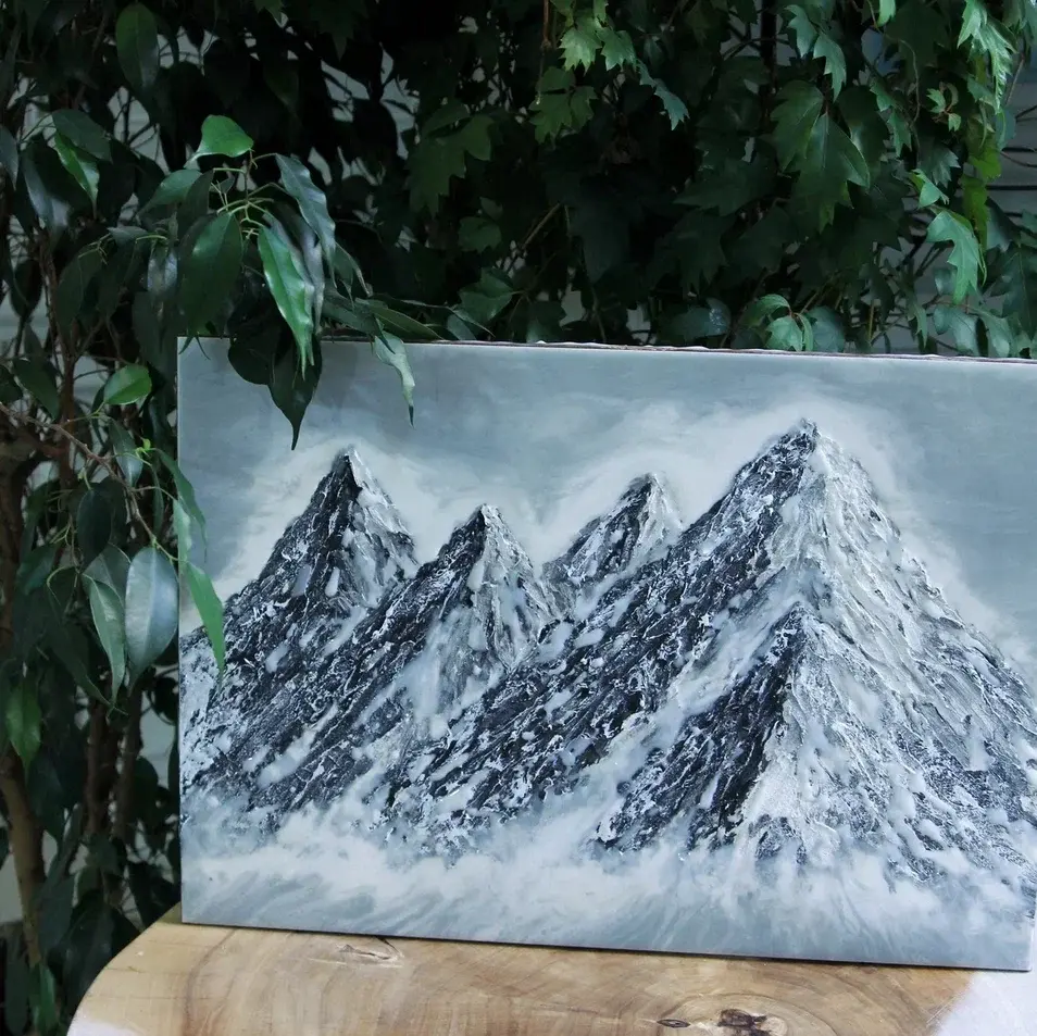 Вы познакомитесь со смешанной техникой, включающей в себя: текстурную пасту, акрил, поталь и эпоксидную смолу. Вы узнаете, что такое текстурная паста, какие ее виды бывают, как окрашивать пасту акрилом, как рисовать подмалевок. Создадите горы, водную гладь, небо при помощи объемной текстурной пасты, эпоксидной смолы и акрила по определенному сюжету на борде 35х50 см.