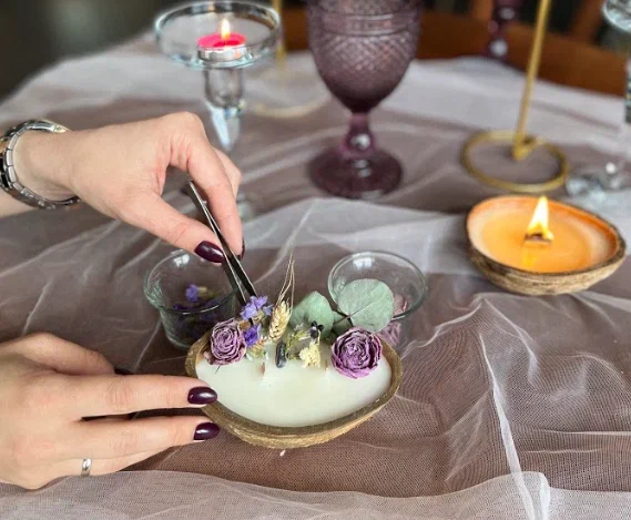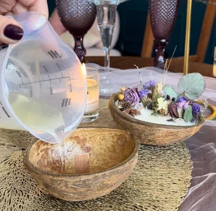 На мастер-классе изготовим свечу из растительного воска с деревянным фитилем. На выбор: кокос или деревянная форма. Такая свеча будет гореть целых 40 часов и радовать вас своим ароматом