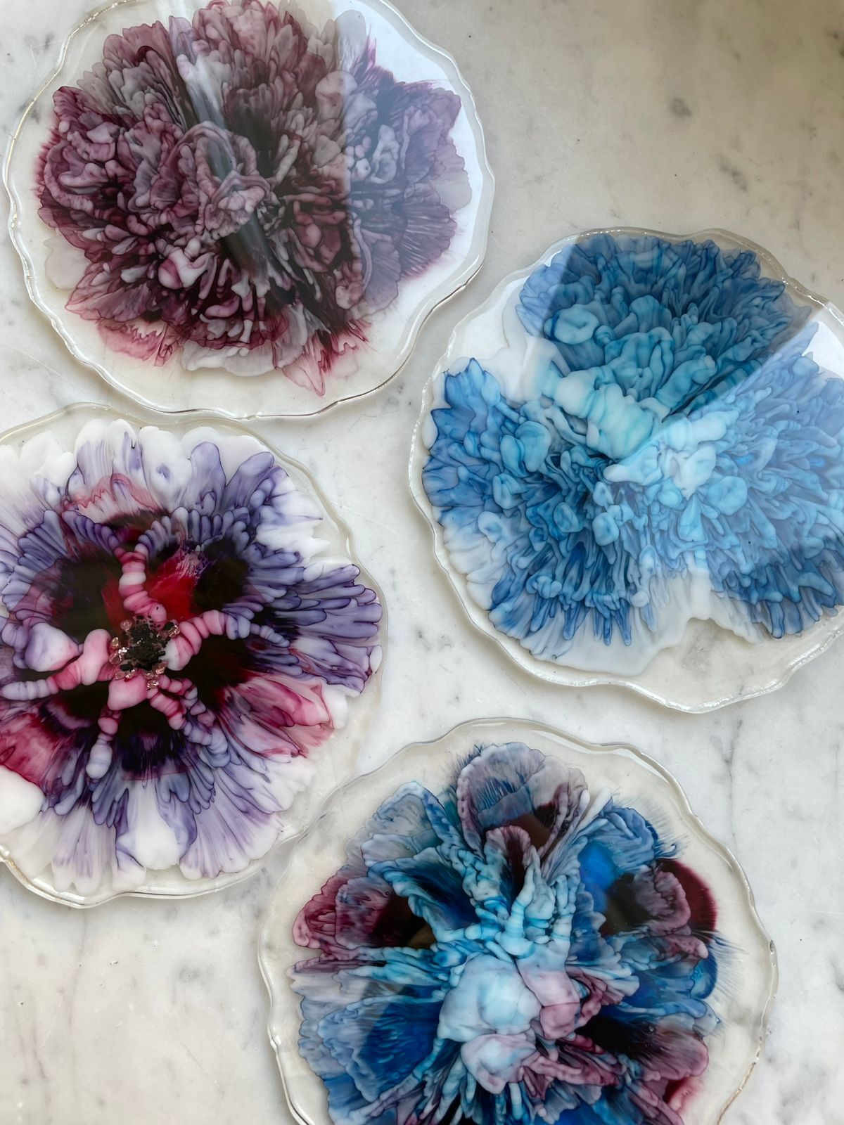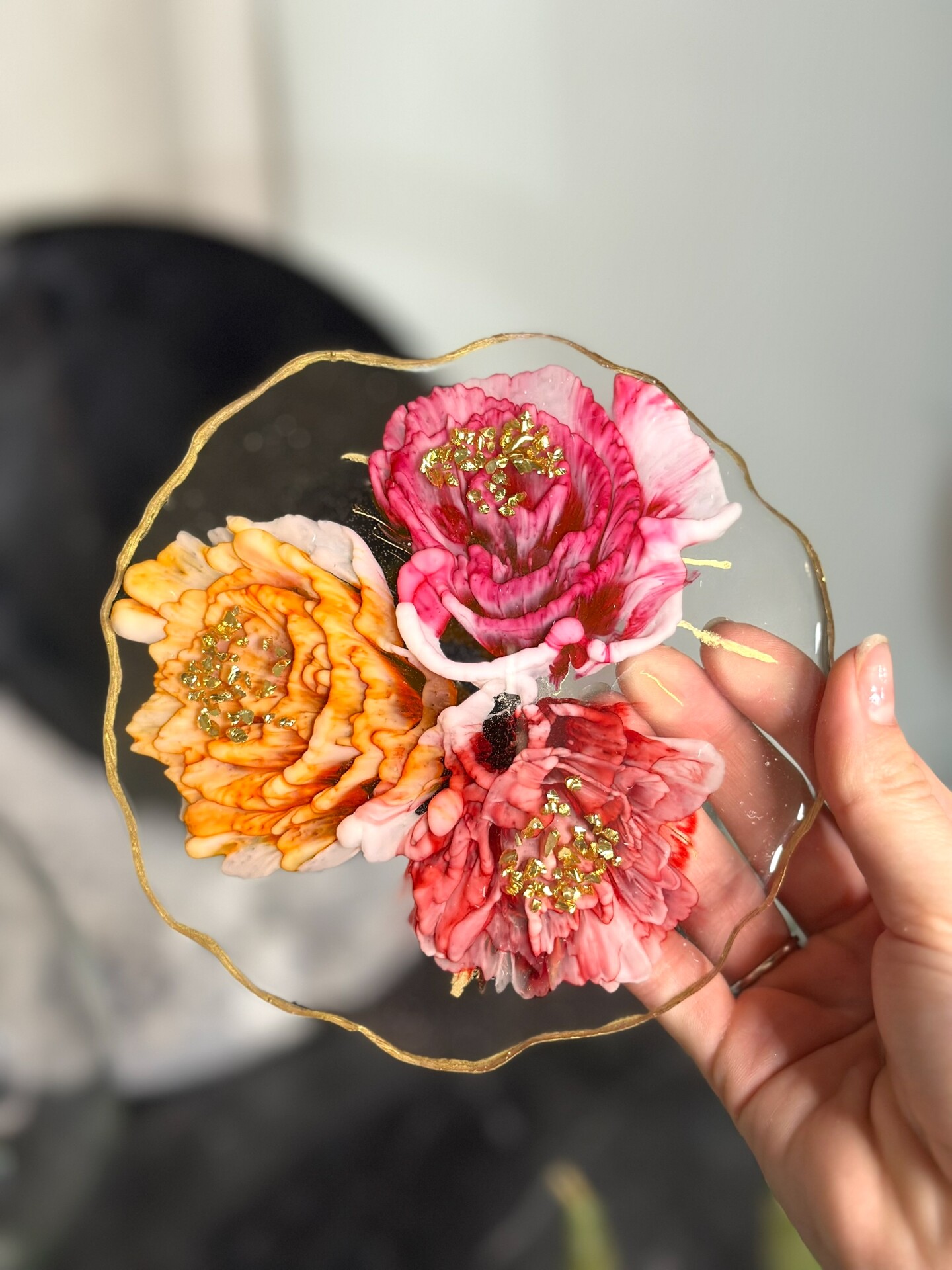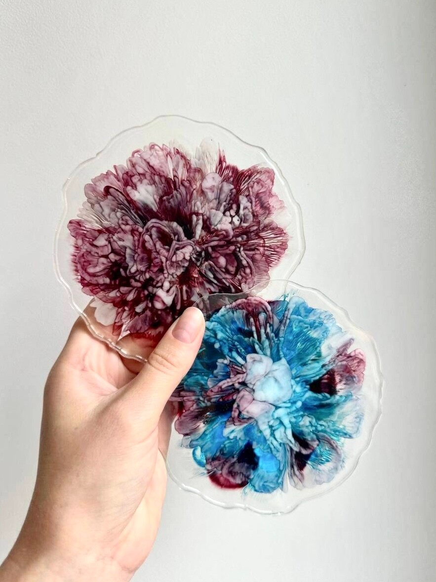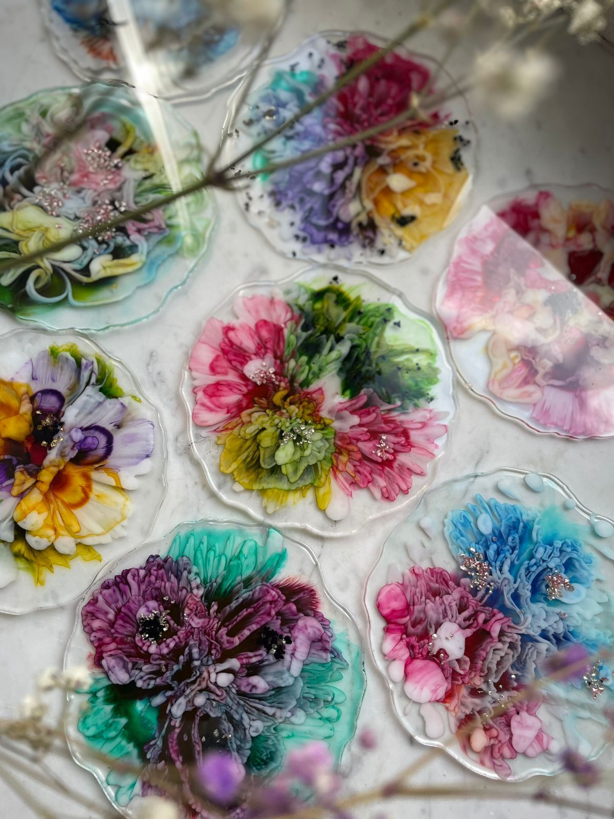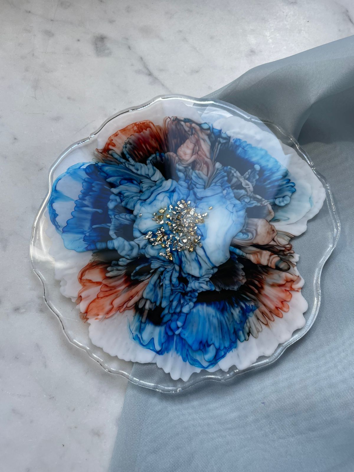 На мастер-классе вы научитесь работать в смешанной технике: эпоксидная смола и спиртовые чернила (ink art). Вы узнаете о специфике совмещения этих двух материалов и важных нюансах в работе с ними. Своими руками создадите набор из двух эффектных подстаканников из прозрачной смолы и разноцветных чернил. Особенность техники в том, что абстрактный узор, имитирует бутон цветка. Подберете для себя красивые цветы из предложенного набора, сформируете интересную композицию и зальете свое уникальное изделие, наполненное летним настроением. Такое изделие из эпоксидной смолы и спиртовых чернил станет стильным дополнением к сервировке стола