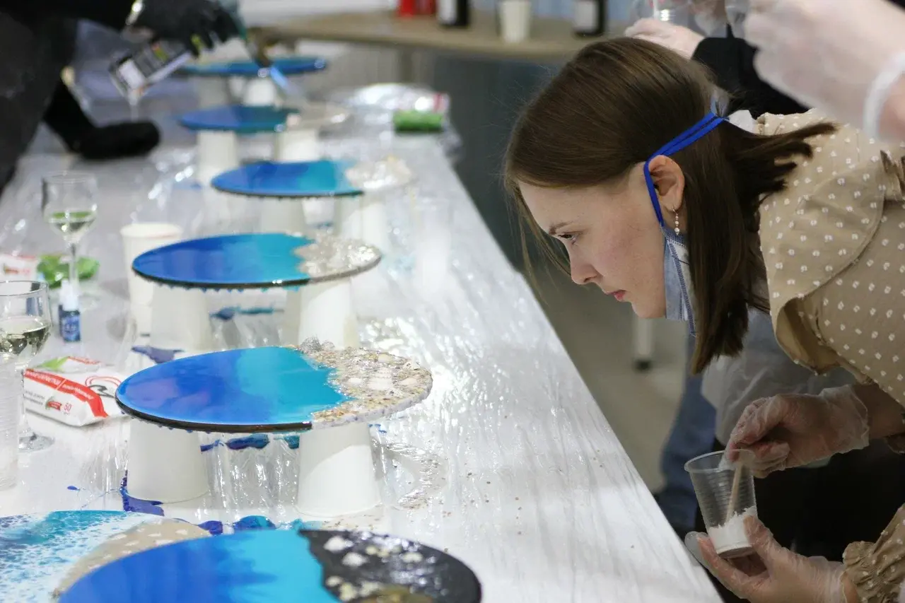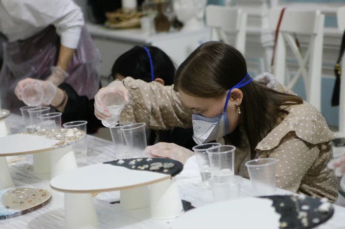 2. Ребёнок от 14 лет может посетить мастер-класс по эпоксидной смоле самостоятельно и сделать небольшое изделие (сервировочную тарелку/4 подстаканника/картину 30 см/ фигурный борд), работа осуществляется в строительном респираторе определённой степени защиты. Перед мастер-классом сопровождающий взрослый должен подписать письменное согласие, о том что он ознакомлен со сложностью и токсичностью материала и берёт на себя все риски, связанные с влиянием материала на организм ребёнка.