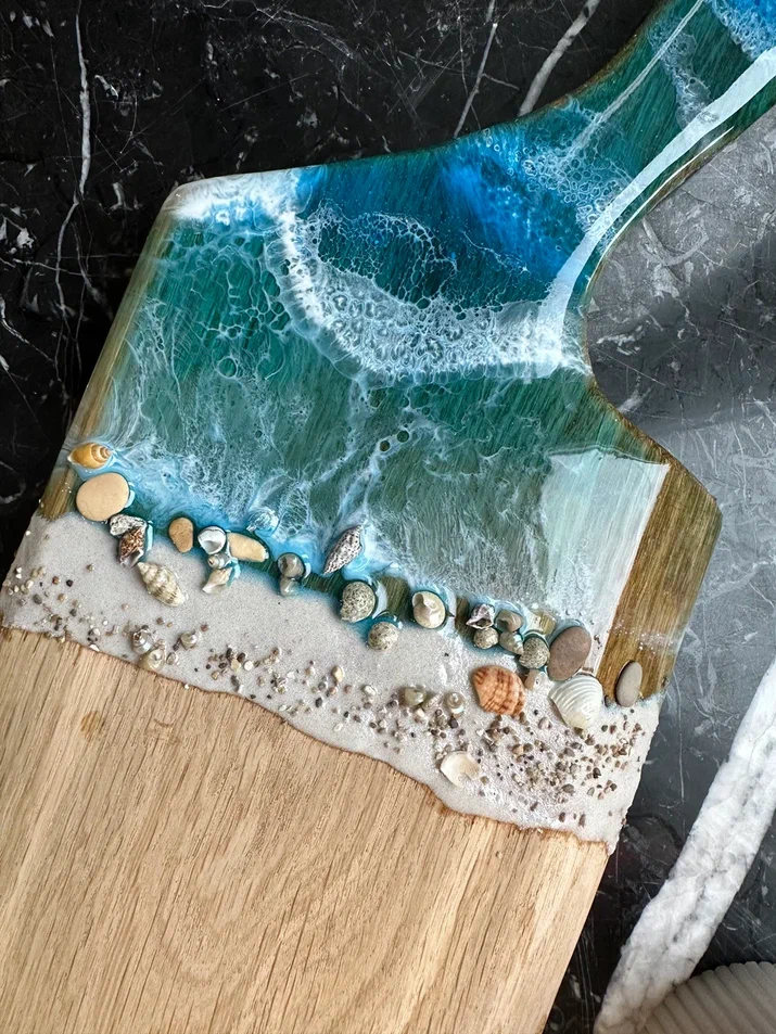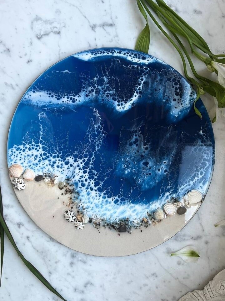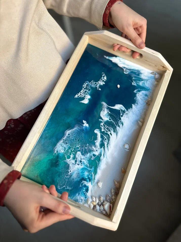 На мастер классе по эпоксидной смоле вы научитесь работать с этим необычным материалом, узнаете о его специфике и важных нюансах в работе. Вы своими руками создадите эффектное изделие, имитирующее морское побережье: с песком, ракушками, камнями и бурлящей пеной волн. Весь декор подберете сами по своим предпочтениям. Можно создать райские Мальдивы или берег с черным песком как на Тенерифе. Такой кусочек моря из эпоксидной смолы будет дарить теплые воспоминания о лете круглый год.