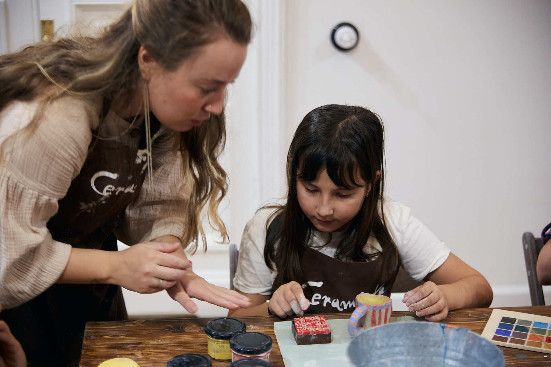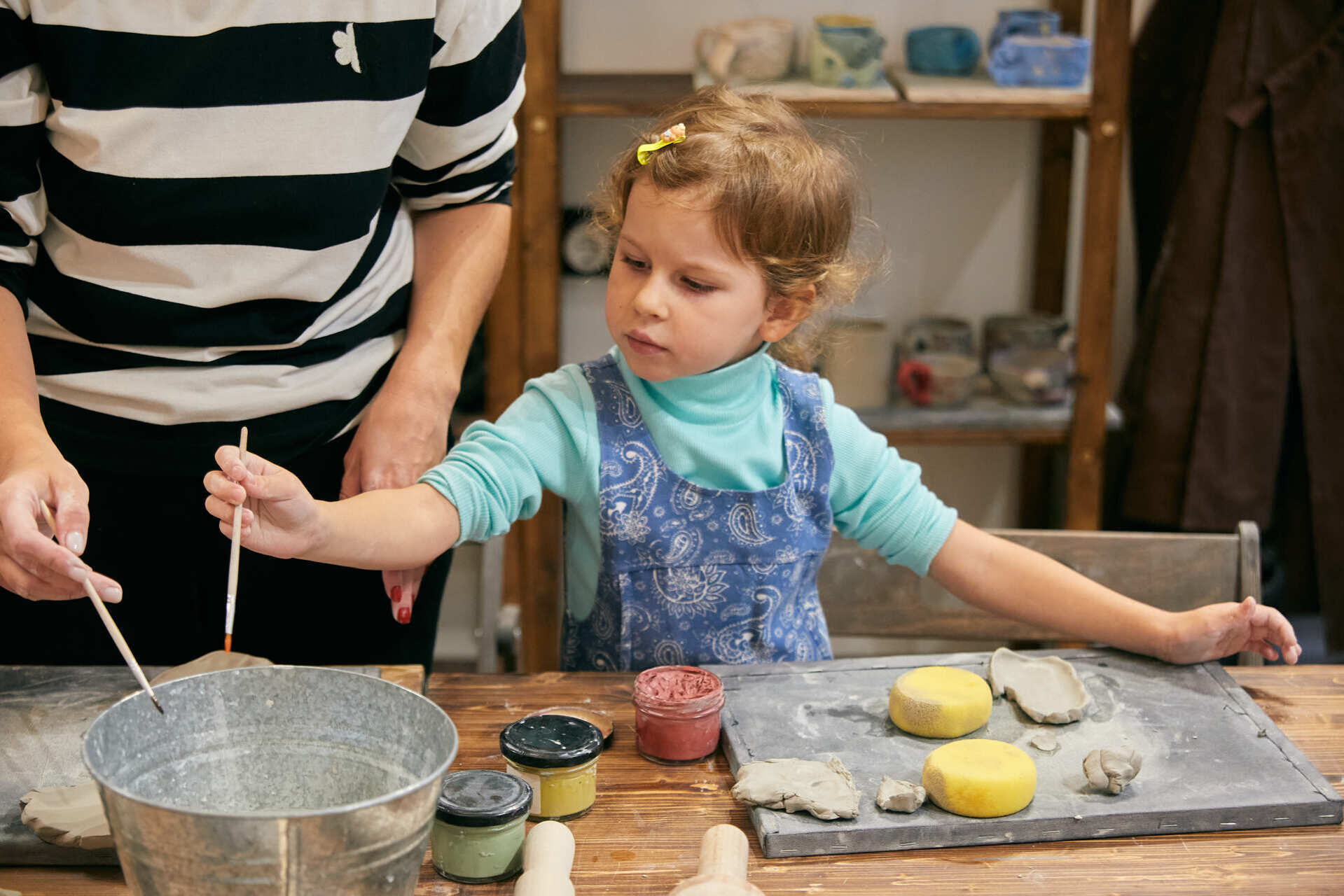 Также мы проведем мастер-класс для первого знакомства с глиной и ангобами и сделаем декоративную тарелку.