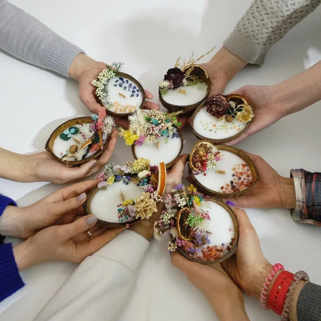 Самые популярные направления: лепка из глины, экскурсия в гончарную студию, рисование акрилом, роспись футболки или шоппера по ткани, шоу стеклодува, фьюзинг, флорариум, создание свеч в кокосе или дереве, мозаика