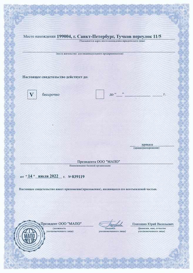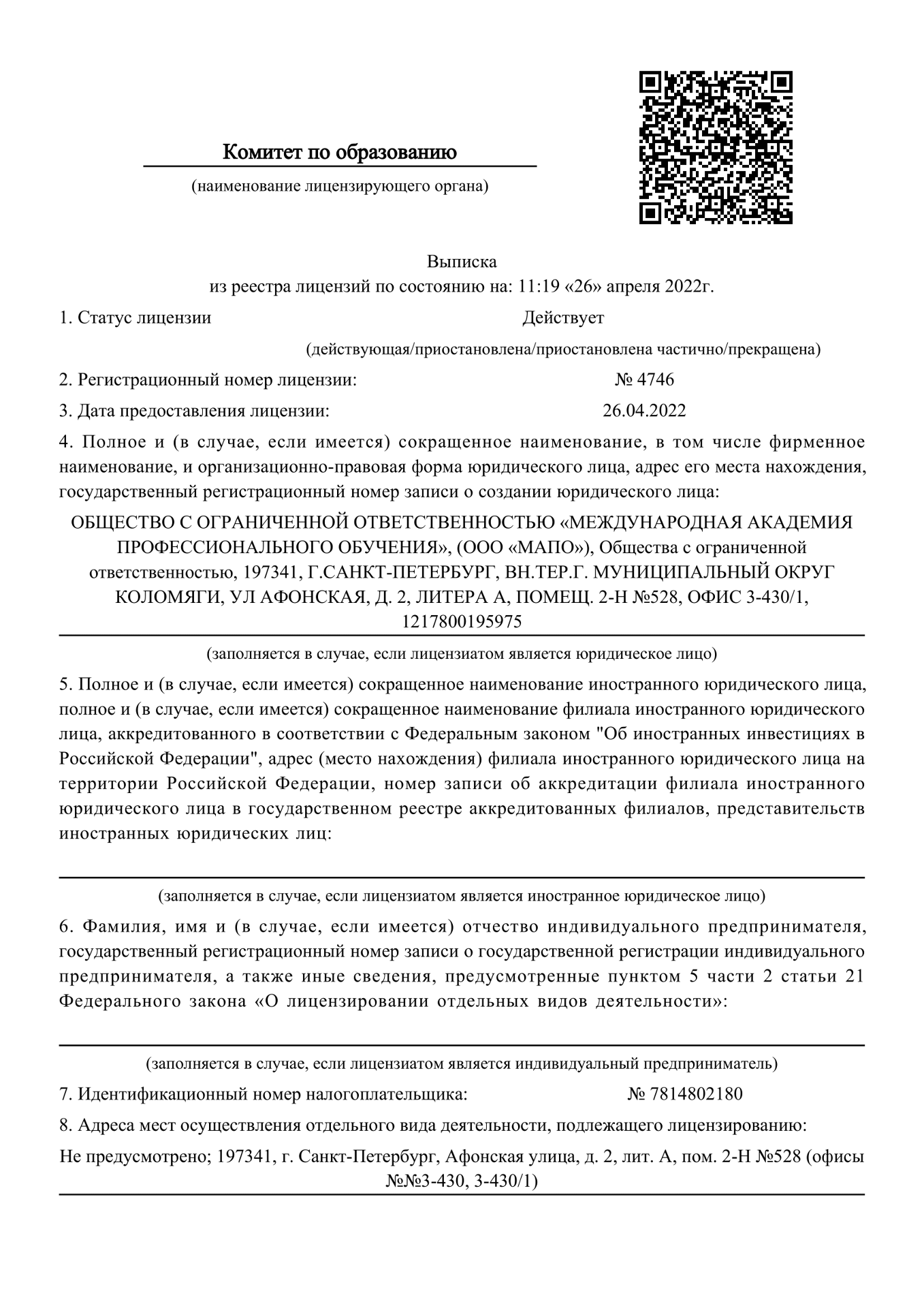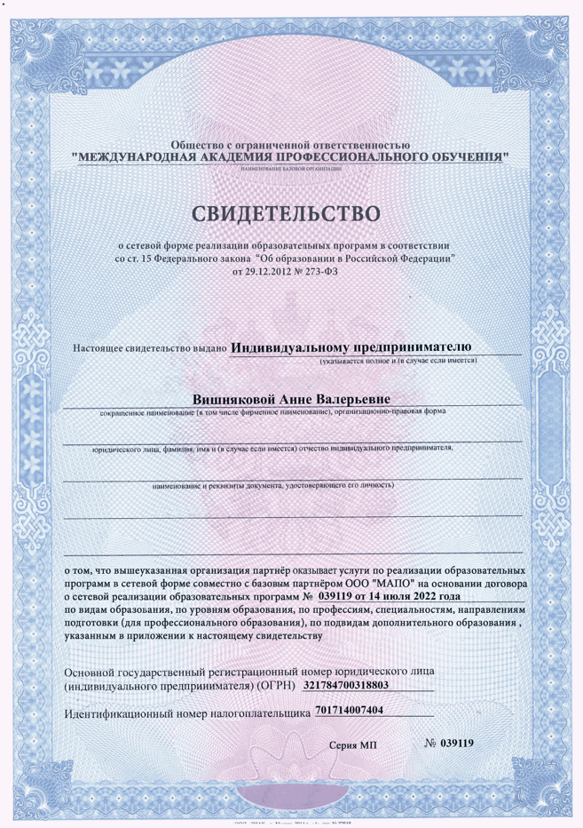 Наш партнёр ООО "МАПО" имеет действующую лицензию на организацию образовательной деятельности.
