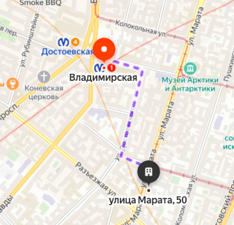 7 минут пешком от ст. м. «Владимирская» и «Маяковская»