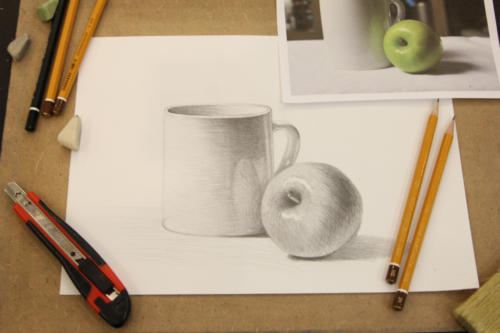 Разбираем, как строится объём на простых телах, учимся передавать объём на телах вращения. Тренируем штриховку.