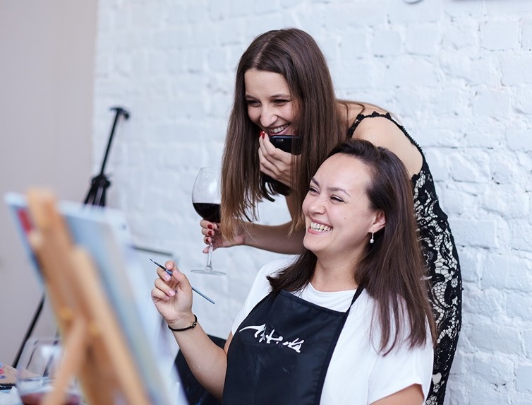 Опыт и навыки рисования не требуются. В стоимость включены все расходные материалы: бумага, кисти, краски, холст, а также бокал любимого напитка (чай, кофе, вино).