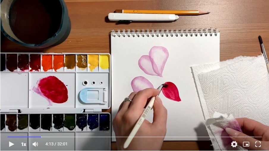 Отрабатываем приемы, которые используюся в ботанической иллюстрации "по сухому" и "по мокрому". Выполняем цветы акварелью.
