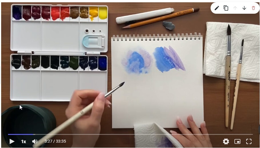 Вводный урок. Состав и свойства акварельных красок. Материалы: кисти и виды бумаги. Учимся смешивать цвета, отрабатываем упражнения на технику: заливки, растяжки, вытягивание цвета.